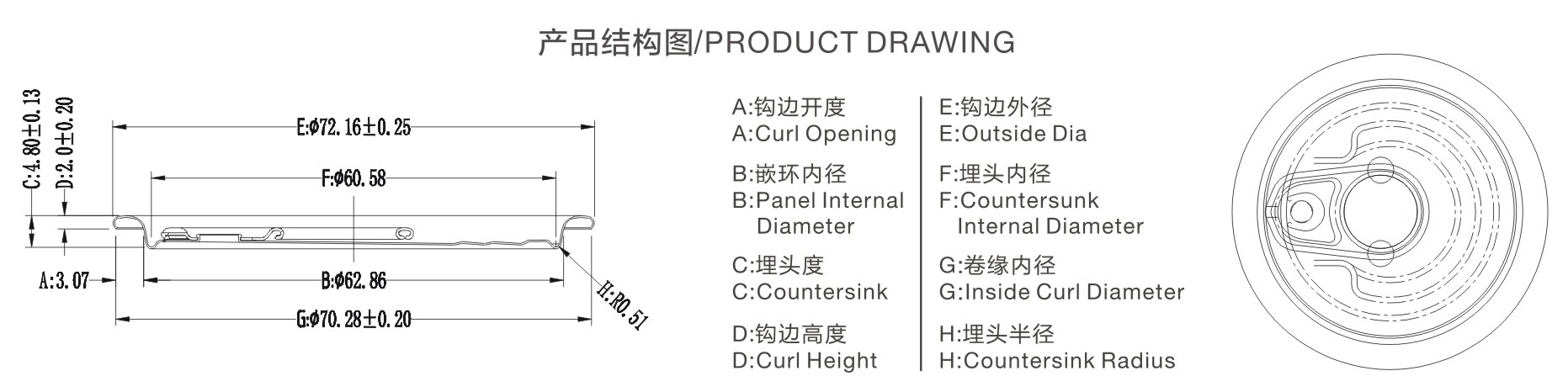 鉤邊外徑(mm) | 72.16±0.25 |